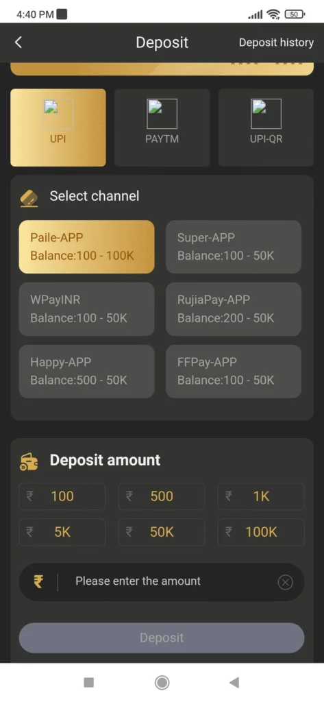 To deposit money in Tp Play Game, follow these steps: First, log in to your Raja Luck account. Then go to the Wallet or Deposit section. Enter how much money you want to add, and pick a payment method — Raja Luck supports options like UPI, USDT (crypto), online banking, and QR code payments. Confirm the payment, and the money will be added to your game wallet.